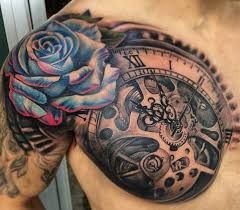 Unique Shoulder Tattoos Roses Clock Rose Tattoo Sleeve Half Sleeve Tattoo Tattoo Sleeve Men